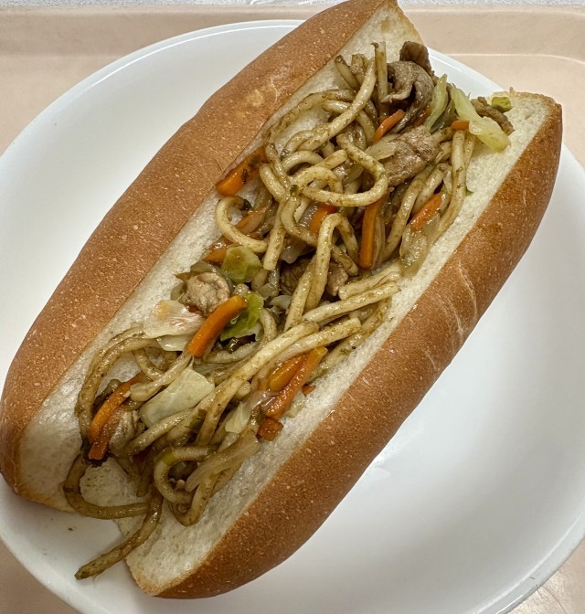 今日はスライスされたコッペパンに、自分で焼きそばを挟んで食べるセルフ焼きそばパンです。子どもたちは楽しみながら上手にパンに挟むことができました。