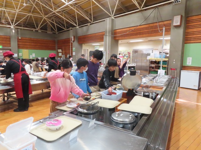 2日目の朝食は食堂で自分で盛り付ける「ブッフェスタイル」です。ドリンクバーもあり嬉しい笑顔がはじけます。自分で食べられる量だけ取りました。メニューは、味噌汁・ごはん・魚・オムレツ・ウインナー(まだまだありました)・・・。