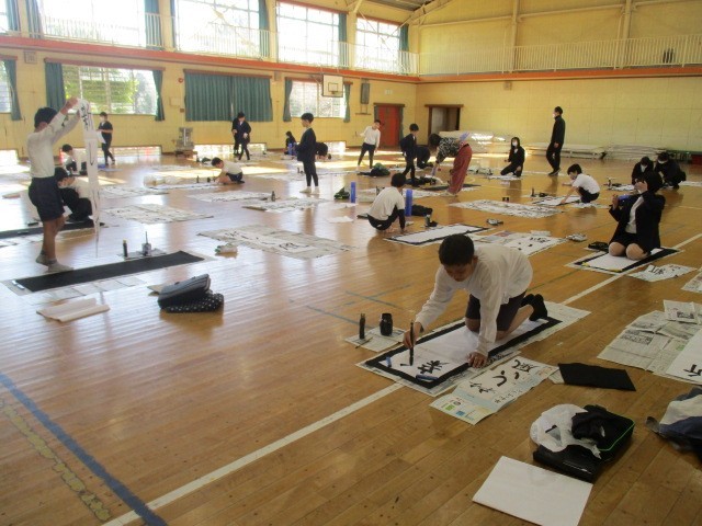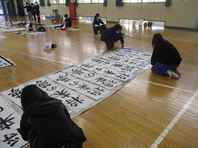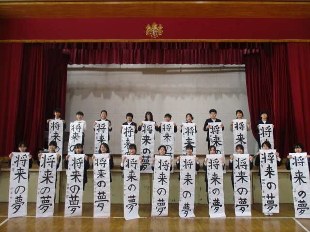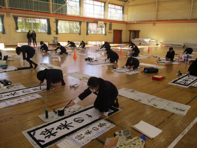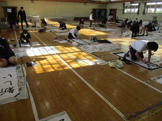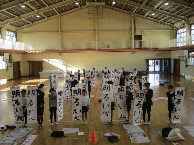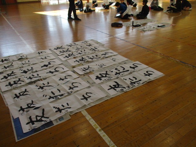 新しい年を迎えて3年から6年は体育館で「書き初め」を行いました。9日に4年生と6年生、13日に3年生と5年生が割り当てられました。当日はボランティアの方々にもお手伝いいただきまして、ありがとうございました。特に「将来の夢」と書いた6年生の作品は力作ぞろいです。各学年教室の廊下に展示してありますので、ご都合のつく保護者の方は、ぜひ見にいらしてください。(PTA名札を着用のうえ、職員室までお声がけください。)30日まで展示しております。