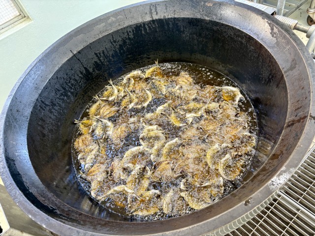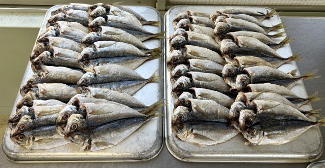 今日の給食は小田原献立です。鯵のカリカリ揚げは、小田原産の鯵の干物を油でカリカリになるまで揚げました。頭から尻尾まで丸ごと食べることができるので、カルシウムをしっかり摂ることができます。