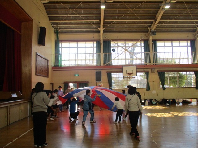 2月3日に本校の体育館で白鷗中学校区の特別支援学級の児童生徒が集まり交流会を実施しました。各学校の紹介や名刺交換、各校の出しものなどをしました。最後は全員でパラシュート体験です。全員で力をあわせてパラシュートを動かして楽しむことができました。各校の支援級担任の先生方、ありがとうございました。
