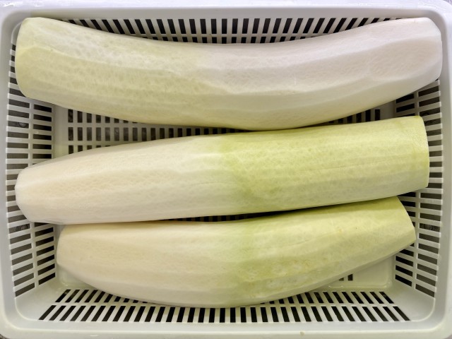 今日は味噌汁の具材に学校で育った大根を使いました。太くて立派な大根が給食室に届いたので、調理員さん達は驚いていました。給食時間に大根の紹介をすると、子どもたちは味わって感謝しながら食べていた様子でした。