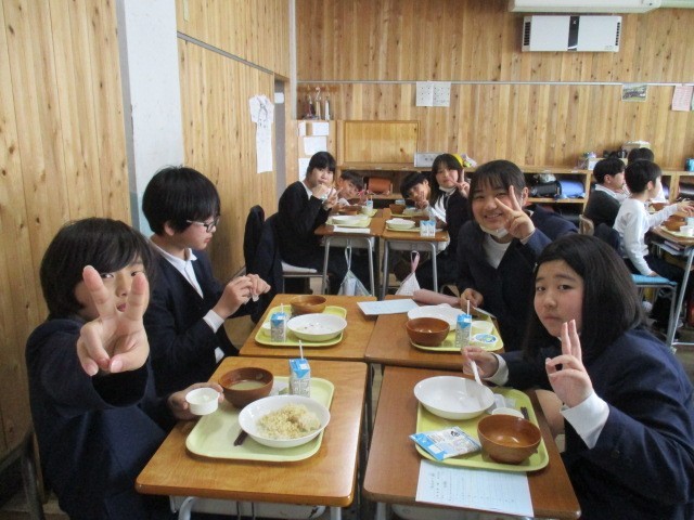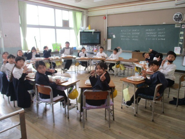 今日3月18日は、今年度最後の給食でした。メニューはもちろん「たいめし」と「巣立ちゼリー」です。卒業式お祝い献立の定番ですが、またこの時期が来たなと感じずにはいられません。6年生は小学校生活最後の給食でしたね。他学年も担任とおかわりじゃんけんをしたり、みんなで輪になったりして楽しく食べていました。