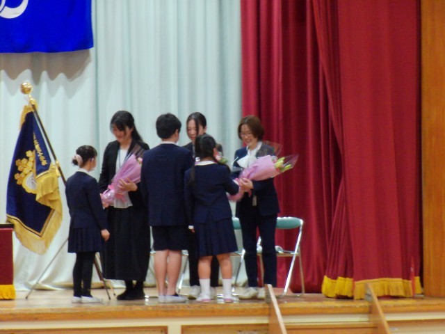 3月25日、令和7年度修了式が行われました。学年ごとに代表児童に修了証を渡しました。また、2年生と4年生が児童代表のことばを担当し、1年間の振り返りやがんばってきたことを発表しました。落ち着いた態度でしっかりと式に臨むことができました。修了式に引き続き、離退任式を行いました。6名の去られる先生方に感謝の思いを伝えることができました。