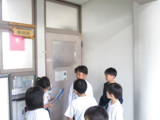 4月22日に1年生と2年生が生活科の学習として「学校たんけん」を行いました。2年生は1年生を連れて学校内の部屋を案内します。「ここは職員室です。うわばきを忘れたら、ここに来るといいよ。」と、説明していました。1年間、学校で生活した2年生にとって、職員室はそのようにうつっているのだな、と感じました。このように、学校の各部屋に思い描いているものは一人ひとり違います。「この部屋でこんなことがあった」「ここに来たらこんなふうにしてもらった」という自分の経験を率直に伝えることができていました。「自分で考え表現する子」という本校のめざす子どもの姿を垣間見ることができ、嬉しくなりました。