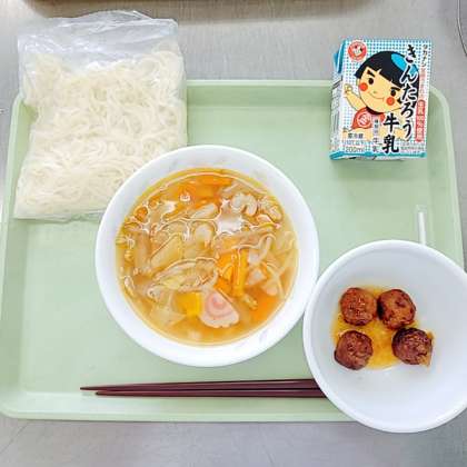 今日は、ちゃんぽんめんが出ました。えびやいか、肉、野菜がたっぷり入ったスープだったので、野菜と海鮮のうまみと味がとても感じられました。子ども達にえびが入ってる人はラッキーな人だよーと言うと、食べ終わってからえび入ってたよーと何人も嬉しそうに教えてくれました。どのクラスもよく食べていました。