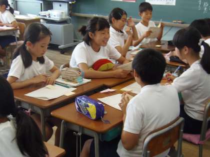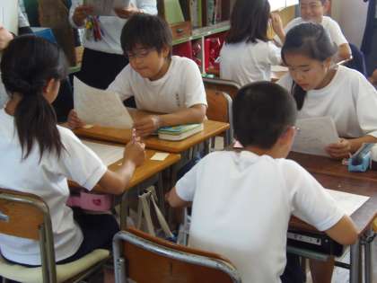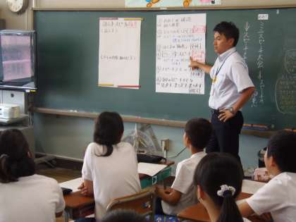 3校時目に校内研究会の研究授業がありました。今年度のテーマ「自ら生き生きと学びあうための関係力の育成」達成に向け、教職員一人一人が授業を公開し、研究協議の場を持ちます。今回は、5年担任の神谷先生が国語の授業提案をしました。子どもたちはとても楽しそうに、生き生きと授業に取り組んでいました。