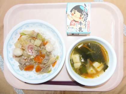 今日の給食 6月13日(火) 公開日 2017/06/13 更新日 2017/06/13 できごと 今日の献立は、中華丼、牛乳、わかめスープです。中華丼には豚肉、にんじん、たまねぎ、キャベツ、たけのこ、するめいか、なると、うずらの卵と食材がたくさん入っています。なるとは、鈴廣のなるとを使用しています。肉、野菜、海鮮、卵が入っているので、栄養がたっぷりです。炒めてすぐ作ることができるので、家庭でもおすすめです。 いいね(0)