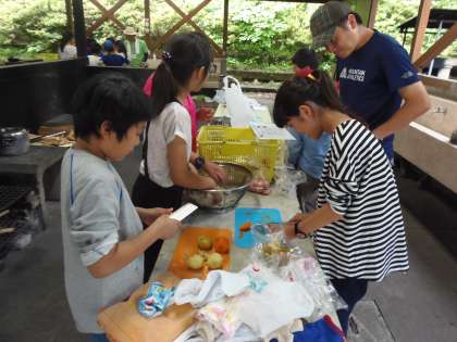 6月22日(木)5年生が足柄ふれあいの村へ宿泊学習に出かけました。とても素晴らしい天候のもと、みんな元気に参加することができました。大雄山駅からは青少年課のボランティアの方々も加わり、子どもたちの安全を見守っていただいたり、野外炊飯の仕方を伝授していただいたりと大変お世話になりました。子どもたちにとっては、カレー作りもとても貴重な体験となったようです。