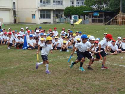 昼休みに体力作りを兼ね、本年度第1回目の「全校リレー」を行いました。今年度から全校児童は4色(赤青白黄)に分かれ、縦割り班活動や運動会に取り組みます。自分がどこを走るのか、バトンは誰からもらい誰に渡すのか等、確認しながら走ったので、バトンの受け渡しで苦労していましたが、記念すべき第1回目の優勝は「白」でした。バトン練習等をしながら、さらに速く走ることができるようになってほしいですね。