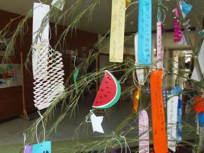 七夕飾り2 公開日 2017/07/05 更新日 2017/07/05 できごと 図書室に七夕飾りがありますが、給食室前にも七夕飾りが置かれました。さっそく短冊に願い事を書いて飾られていますが、家族みんなの幸せを願う、心温まるものが多いようです。みなさんも願い事を書いてみてはいかがですか。 いいね(0)