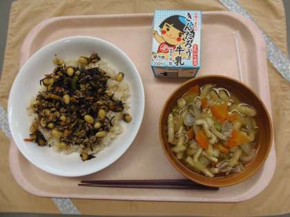 今日の給食 7月10日(月) 公開日 2017/07/11 更新日 2017/07/11 できごと 今日の献立は、豆入りひじきごはん、牛乳、さわにわんです。さわにわんは、漢字で書くと沢煮椀と書き、たくさんの材料を使って煮た料理のことです。元々は猟師料理と言われています。だし汁、酒、しょうゆで柔らかに味付けをして煮ます。すまし汁のようにだしの味が際立って、だしの味をしっかりと味わえます。豆入りひじきごはんは、普段摂取することが難しい鉄分とカルシウムがたっぷりです。 いいね(0)