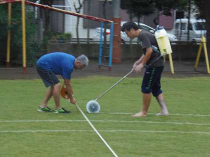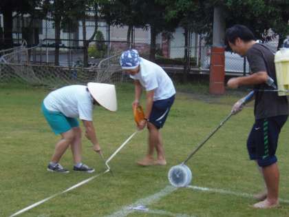 運動会のライン引き 公開日 2017/09/05 更新日 2017/09/05 できごと 9月4日(月)の放課後、運動会の練習がしやすいように芝生にラインを引きました。白ペンキを水で薄めたものを吹きかけてラインを引くのですが、小雨の中行ったこともあり、なかなか難しかったです。これで運動会の練習にもさらに集中して取り組むことができそうです。 いいね(0)