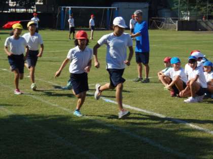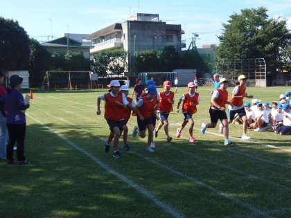 運動会の個人種目の中に中距離走(グラウンド3周)があります。9月13日(水)の朝の活動時間に中距離走の練習が行われました。運動会本番に向け、練習する顔つきも真剣でした。