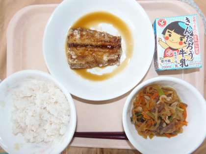 今日の献立は、麦ご飯、牛乳、さんまのかば焼き、切干大根の煮物です。さんまが美味しい季節になってきましたね。今年は、値が高いさんまですが、さんまにはDPAやEPAという脂質が多く含まれて、記憶力の保持に効果的です。その他にも血管を強化したり、粘膜を丈夫にする栄養も含まれています。1番美味しい旬の時期に、たくさん食べてほしいと思います。