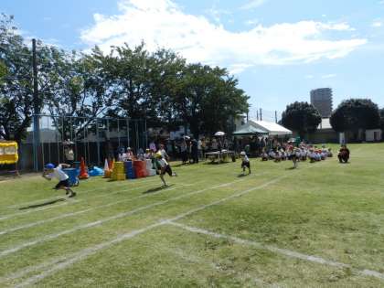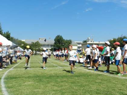 3・4年生は80M走に挑戦しました。スタートしてすぐにコーナーを回り、長い直線を走り抜けます。ゴールのところでシャッターチャンスを待っている保護者の方々に向かって、子どもたちは力いっぱい走っていました。