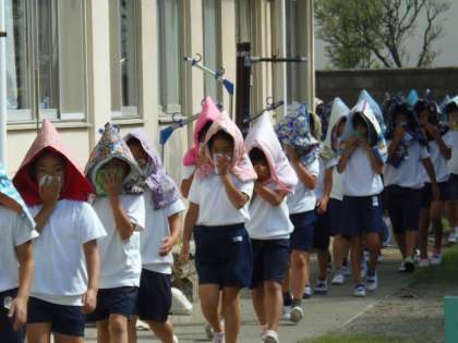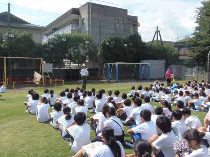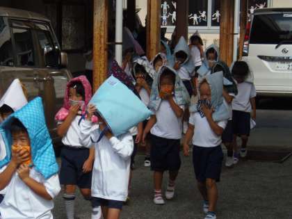 9月25日(月)避難訓練を実施しました。今回は火災に対する避難で、出火場所を調理場と想定して行いました。子どもたちは放送による指示をしっかりと聞き、「おかしも」を守って運動場に避難しました。「おかしも」とは「おさない」「かけない(走らない)」「しゃべらない」「もどらない」の頭文字をあわせた言葉です。「自分の命は自分で守る」ことができるよう、ご家庭でも火災に対する備えについて話し合っていただければと思います。