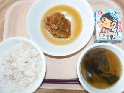 給食 10月3日(火) 公開日 2017/10/03 更新日 2017/10/03 できごと 今日の献立は、麦ご飯、牛乳、揚げ鶏のねぎソースかけ、わかめスープです。揚げ鶏のねぎソースかけは、鶏肉の切り身を唐揚げの作り方で揚げて、砂糖、しょうゆ、長ねぎ、酢、かたくり粉を混ぜ合わせたソースを上からかけます。酢が入っているので、酸味があり、さっぱりとして疲労回復にも効果的です。唐揚げにソースをかけることで、普段と違う一品になりました。 いいね(0)