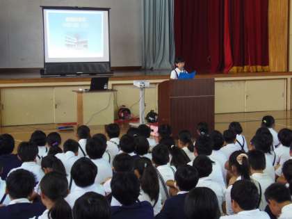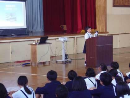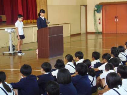 10月10日(火)後期始業式が行われました。児童代表の言葉には、「縄跳びが上手にできるようになりたい」「友だちと仲よくしたい」「ノートに上手く記入できるようになりたい」「積極的に行動したい」等、後期にがんばりたいという一人一人の思いがしっかりと込められていました。6年生にとっては、小学校生活はあと半年。一日一日を大切に過ごしてほしいと思います。