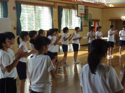 10月20日(金)小田原市城山陸上競技場で行われる体育大会に向け、ダンス「小田原小唄」の練習が始まっています。今日は体育館にて当日と同じように輪を作って踊っていました。まだ動きを覚えるのに精一杯の子もいましたが、個人種目と同様に練習を積み重ね、当日には気持ちよく踊ることができるといいですね。