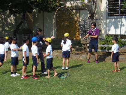 中休み、子どもたちは元気に外遊びを楽しんでいます。今日はクラス毎にまとまって長縄とびやドッジボールを楽しんでいました。暑さが厳しい日は今日までで、明日からは涼しく、また雨が多いようです。季節の変わり目ですので、体調には十分気をつけさせたいです。
