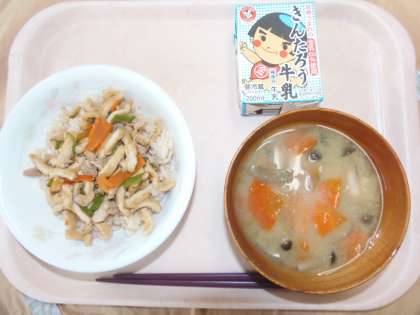 給食 10月18日(水) 公開日 2017/10/18 更新日 2017/10/18 できごと 今日の献立は、こぎつねごはん、牛乳、秋の香り汁です。こぎつねごはんは、油揚げを細く切って油抜きをしたら、にんじん、鶏肉と一緒にだし汁、砂糖、しょうゆ、みりんで煮て、茶飯の上にかけます。きぬさやを入れて緑色を入れてみました。油揚げは、家庭であれば冷凍して保存でき、きのこや家にある野菜と一緒に煮込めば、簡単に作ることができます。甘じょっぱい味がいくらでも食べられる美味しさです。 いいね(0)