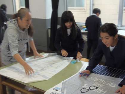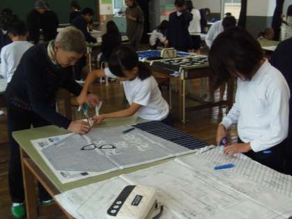 10月19日(木)5年生が家庭科の時間に「エプロン作り」を行っていました。本日もボランティアの方々の協力を得て、子どもたちはエプロンの裁断作業をていねいに行いました。できあがりまでまだ時間はかかりますが、そのエプロンを身につけて調理実習を行うことを思い描きながら、楽しく作業をしています。ボランティアの皆様、ありがとうございます。