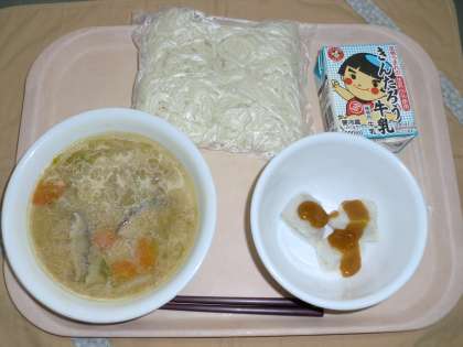 給食 10月20日(金) 公開日 2017/10/20 更新日 2017/10/20 できごと 今日の献立は、ほうとううどん、牛乳、揚げ里芋の味噌絡めです。ほうとうは、山梨県の郷土料理で野菜と共に味噌仕立ての汁で煮込んだ料理のことです。かぼちゃや山菜、野菜等を入れて煮込むのが昔ながらのほうとうで、豚肉や鶏肉を入れるのは、観光客用に料理店が入れたそうです。給食では、豚肉、にんじん、だいこん、ごぼう、白菜、長ねぎ、しいたけを入れました。栄養たっぷりでとても体が温まります。 いいね(0)