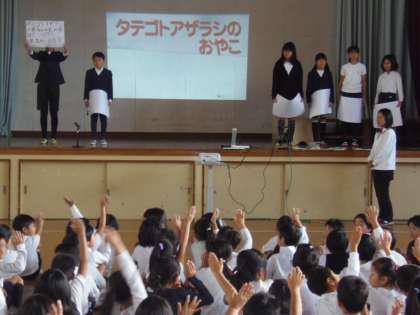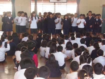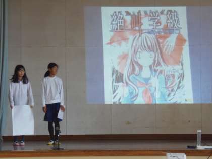 また、図書集会の後、6年生が体育大会終了のお礼を下学年の子どもたちに伝える時間もありました。