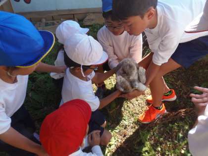 11月1日(水)のスーパー昼休み、飼育委員会の子どもたちが「ウサギとのふれあい」の時間を作り、たくさんの低学年の子どもたちが「ラビットハウス」を訪れ、ふれあいを楽しんでいました。