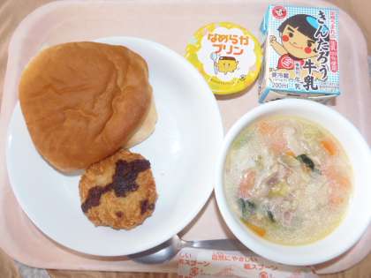 給食 11月9日(木) 公開日 2017/11/09 更新日 2017/11/09 できごと 今日の献立は、サンドパン、牛乳、チーズフォンデュコロッケ、ABCスープ、プリンです。チーズがたっぷりと入ったコロッケにソースをかけて、パンにはさんで食べます。コロッケは、油で揚げるときにチーズが飛び出やすいので揚げるときに気をつけて揚げました。ABCスープは子どもに人気のあるメニューです。マカロニが膨らみすぎないように出来上がる少し前に入れます。 いいね(0)
