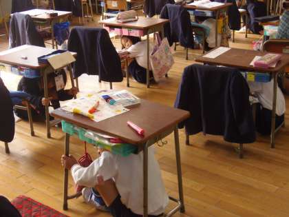 11月13日(月)中休みの時間、子どもたちには予告をせずに避難訓練を実施しました。休み時間に地震が起きたという想定でしたが、運動場や教室、昇降口等、様々な場所で放送を聴いた子どもたちが、速やかに運動場の中央に集まって身を低くしたり、机の下に入ったりすることができていました。「自分の身は自分で守る」ことができるよう、訓練を積み重ねています。