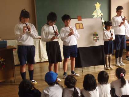 11月29日(水)昼休みにチャレンジ級の学習発表会が行われました。「あわてんぼうのサンタクロース」を中心に、台詞を言ったり、鍵盤ハーモニカやリコーダー、鈴、タンバリン等を使って、とても上手に演奏したり、歌を歌ったりすることができました。見学に来た1年生から6年生の子どもたちも一緒に歌い、とても楽しそうでした。たくさんの保護者の皆様にもご参観いただきました。ありがとうございました。