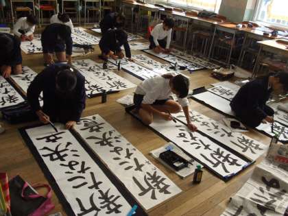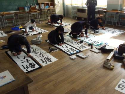 12月13日(水)6年生が書き初めの練習に取り組みました。今回書く字は「新たな決意」。中学進学に向け、新たな決意で新年を迎えてほしいですね。書き初め会は1月11日(木)の予定です。冬休みも条幅紙を1枚持ち帰りますので、練習をがんばりましょう。