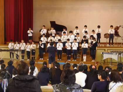 2月7日(水)3・4年生の学習発表会がありました。3年生は、体育(マット・跳び箱運動)、国語(「モチモチの木」朗読)、そして、音楽「トルコ行進曲」等の合奏を発表しました。どの発表も今まで練習してきた成果を発揮し、すばらしい動きや朗読、演奏でした。会場の4年生やたくさんの保護者の皆様から、拍手をいっぱいもらっていました。