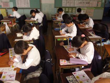 2月9日(金)朝の時間、各学級ではすでに学習が始まっています。1年生は漢字の練習をしていました。担任の指導をしっかりと聞いて、一画一画ていねいに書いて練習していました。2年生は漢字のテストに取り組んでいました。みんな真剣な表情でした。また、5年生は、理科の実験をしていました。温度ともののとける量の違いを調べる実験でした。今日も寒い朝を迎えましたが、子どもたちは朝から一生懸命学習に向かっています。