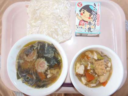 今日の献立は、しょうゆラーメン、牛乳、生揚げと白菜の中華炒めです。白菜が、過去にないほど高値になっていますが、ビタミンCが豊富で煮物や汁物にはもってこいの食材なので、給食では通常通り使用しています。火を通すと水が出てしまうので、最後に入れて炒めすぎないうちにかたくり粉でとろみをつけました。白菜がたっぷりと入ってとても贅沢でした。