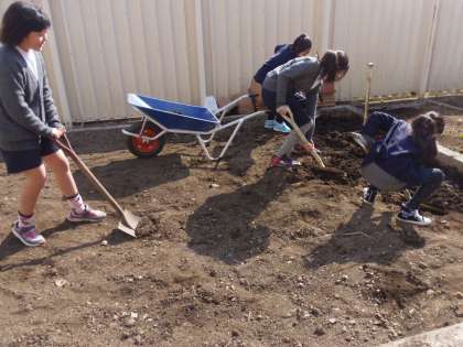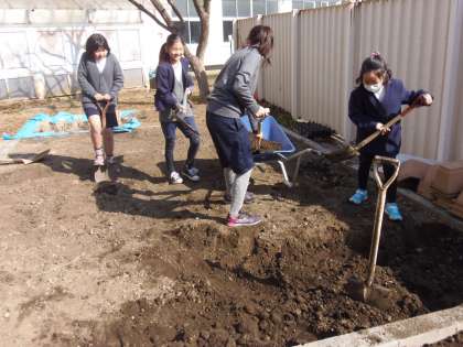 校舎裏手に倉庫跡がありますが、その跡地を来年度には田んぼにする「田んぼプロジェクト」が始まりました。例年、「バケツ稲」に取り組むのは5年生ですので、現4年生が田んぼ作りに取り組みます。倉庫跡の土には石や砂利等が多く含まれており、その土をプール裏手に運ぶことから始めています。休み時間になると子どもたちが集まり、一生懸命に作業をしました。今後は、校務用員さんにもお手伝いいただきながら、4年生の子どもたちの作業は続きます。