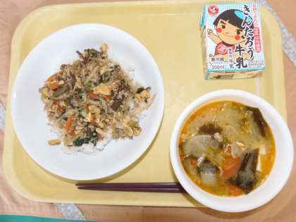 給食 2月20日(火) 公開日 2018/02/20 更新日 2018/02/20 できごと 今日の献立は、牛乳、ビビンバ、チゲ汁です。今日も韓国メニューとなっています。チゲ汁とは、肉や魚、野菜、豆腐などの材料に味噌や唐辛子を加えて煮た鍋物のことです。見た目を赤くするため、コチュジャンの量を調整しました。辛さを出さないようにするため、豆板醤の量は少なめにします。冬はもちろんのこと、夏でも汗をかきながら食べることで新陳代謝が良くなり、元気が出ます。 いいね(0)