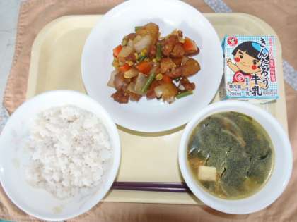 給食 2月27日(火) 公開日 2018/02/27 更新日 2018/02/27 できごと 今日の献立は、麦ご飯、牛乳、鶏肉とコーンの揚げ煮、わかめスープです。鶏肉とコーンの揚げ煮は、名前からだとどんなメニューかわかりづらいですが、唐揚げ、じゃがいもの素揚げとピーマン、人参、たまねぎ等をしょうゆ味ベースで炒めたメニューです。子どもが好きな唐揚げや、じゃがいもの素揚げが入っているので人気があります。ボリュームがあるので、スープはあっさりとわかめスープにしました。 いいね(0)