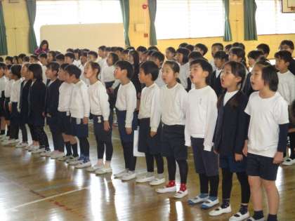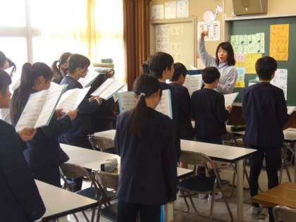 卒業式の歌の練習が始まっています。2階から美しい歌声が響いてくるので見に行ってみると、6年生が音楽室で卒業式の歌の練習をしていました。みんな真剣な表情で練習していました。また、昼休みには、1〜5年生が体育館に集まり、卒業式で在校生が歌う歌の練習をしていました。3月20日(火)の卒業式に向け、みんなで力を合わせ、がんばって練習しています。