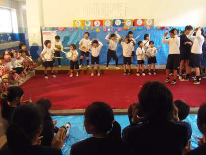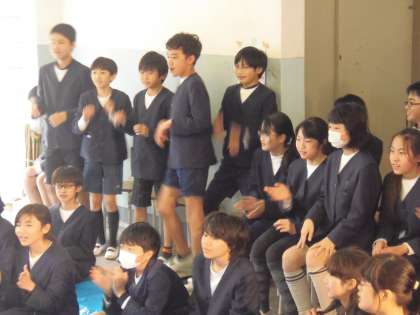 3月9日(金)昼休みに1年生が「ありがとうライブ」を開きました。西昇降口に特設舞台を設置し、この1年間お世話になった6年生を招待して、「恋ダンス」や「またあえる日まで」等、かわいいダンスや歌を披露しました。招待された6年生もノリノリで、一緒にダンスをしたり歌ったり、とても楽しい時間となりました。