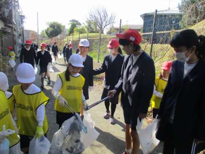 3月12日(月)1年生と6年生が一緒になって、今年度最後の地域清掃をしました。浜町方面と中町方面に分かれ、1年生と6年生がチームを組んでごみ拾いをしましたが、たくましく成長した1年生が6年生に負けじと一生懸命に働いていました。地域の方々にも元気にあいさつをしました。これからも地域に出ての学習の機会を大切にしていきます。