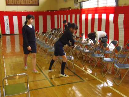 卒業式会場準備