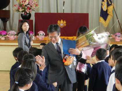 4月6日(金)離任式が行われました。3月末に行われた離任式に引き続き、今回は2名の先生方とのお別れの時間となりました。子どもたちはお世話になった先生方のお話にしっかりと耳を傾け、別れを惜しみながら参加することができました。離任された先生方の次の学校でのご活躍をお祈りいたします。