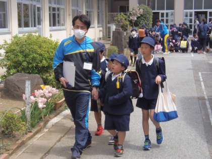 4月6日(金)下校指導を行いました。下校指導は、緊急時に地区ごとに集合し、教職員が引率して安全に配慮しながら児童を下校させるものです。今年度第1回目の下校指導では、児童と担当職員とが顔合わせをし、安全を確認しながらそれぞれの地区に帰りました。ご協力ありがとうございました。