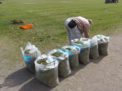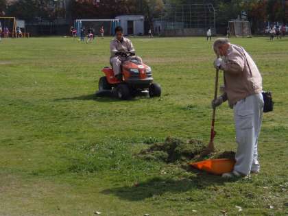 4月9日(月)小田原市管財課の方々による芝刈りが始まりました。初夏の陽気の日もあり、冬芝が勢いよく伸びていましたが、ほどよい長さに刈っていただくことができました。これから毎週月曜日に芝刈り作業が行われる予定です。作業中は近づかないようにということを子どもたちには指導しています。ご協力をお願いします。