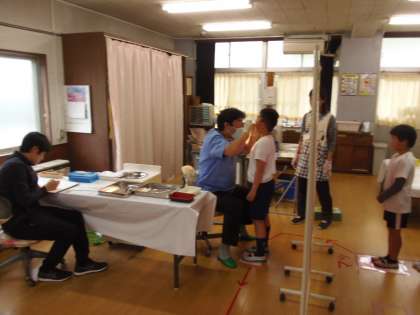 4月18日(水)歯科校医の吉井先生による歯科検診が行われました。子どもたちは養護教諭の青木先生、池田先生の指示をしっかりと聞き、静かに行動することができていました。後日、検診結果が届きましたらご確認いただき、むし歯がある場合は早めの治療をお願いします。一昨日、内科検診は終わりましたが、5月の耳鼻咽喉科検診、眼科検診等まで、しばらく健康診断が行われますのでご承知おきください。