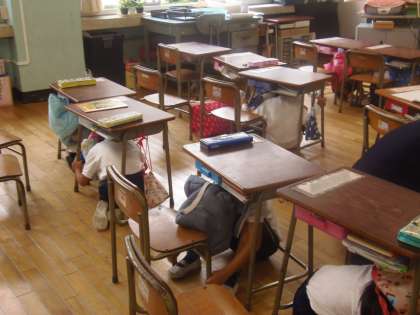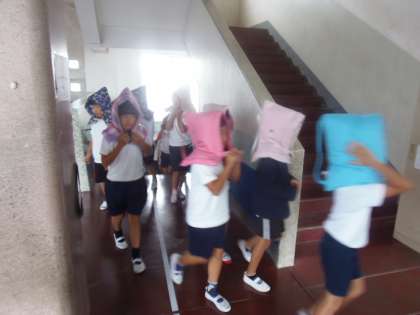 9月27日(木)2校時目、地震と津波発生を想定した避難訓練を実施しました。予告なしにもかかわらず、子どもたちはしっかりと放送を聞き、机の下に身を隠したり、3階に避難したりしました。日頃の心構えがしっかりとできているなと感じました。ご家庭でも、地震対策、津波対策等について話し合い、確認していただきたいと思います。