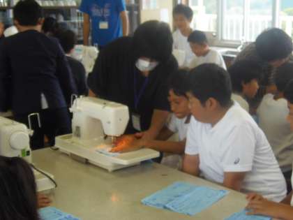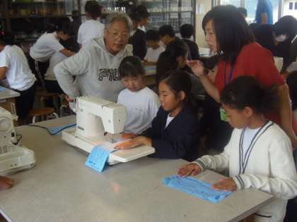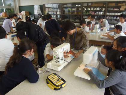 9月27日(木)3〜4校時目、5年生は家庭科の授業でミシン縫いを行いました。ミシンは故障が多く、先日もボランティアの方々に修理していただいたばかりです。今日もボランティアコーディネーターの深澤さんをはじめ6人のボランティアの方々に支えていただきながら、ミシン縫いの実習が行われました。初めてミシンにさわる子もいたようですが、子どもたちはとても楽しそうに作業を行っていました。ボランティアの皆様、ありがとうございます。